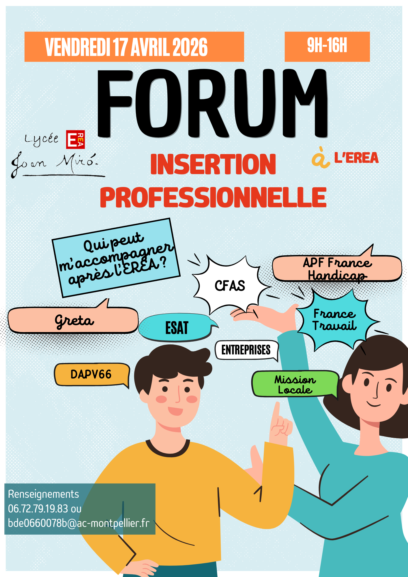Le vendredi 17 avril de 9h à 16h aura lieu sur l'EREA, le forum de l'insertion professionnelle.